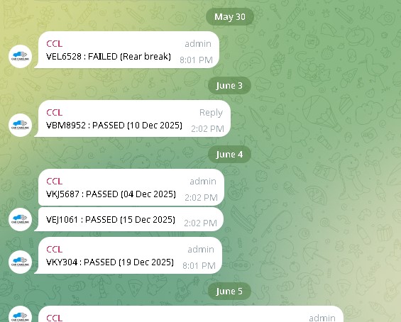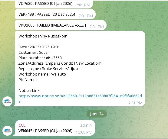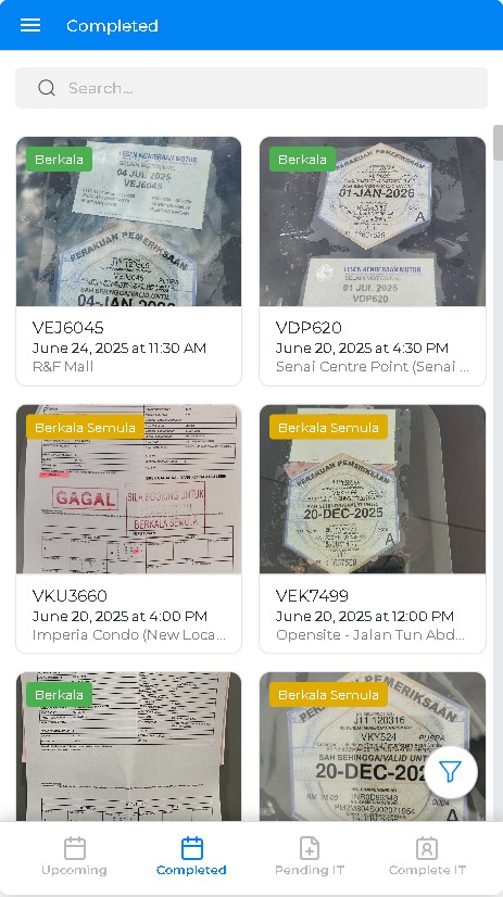 Runner Puspakom untuk syarikat (Company) Kami menyediakan kemudahan untuk pihak syarikat menguruskan kenderaan mereka Hubungi Kami Kelebihan yang kami tawarkan Sistem yang teratur dan sistematik Merekodkan sistem automasi Update Pantas dan harian Pemeriksaan Sebelum ke puspakom Peringatan untuk Tarikh pemeriksaan Dipercayai Oleh Pelbagai Syarikat Jangan tunggu kerana kami menawarkan pelbagai kaedah pembayaran Learn More © All Rights Reserved.